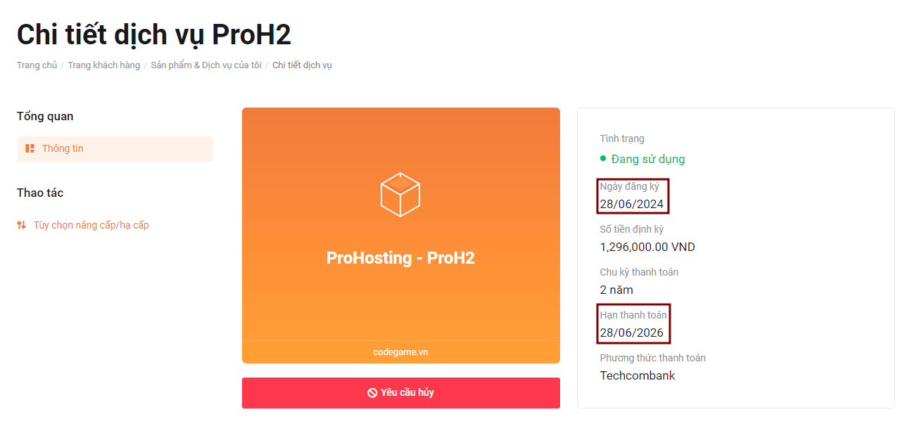 Bạn vào trang tài khoản khách hàng tại https://secure.vinahost.vn/ac/index.php?rp=/login. Sau đó, bạn cho mục “Dịch vụ của tôi”. Tại đây, bạn sẽ thấy thông tin về ngày đăng ký và ngày hết hạn Hosting.